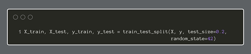 Our next step is to use train-test-split to give us subsets of the data to train and test our models. We will use an 80/20 split (20% is testing data) and set a random_state of 42, which seems to be somewhat of a tradition.