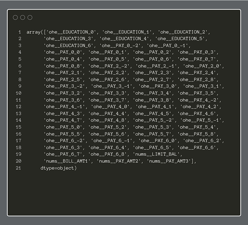 We can see the new feature names of the transformed dataset below: