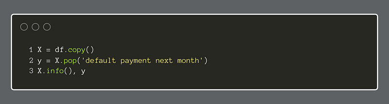 This short piece of code will separate the features from the target variables.